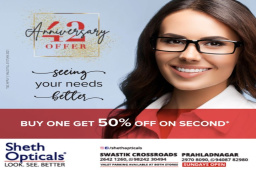 Celebrating Our 42nd Anniversary Presenting Buy One Get 50 OFF On Second Offer Seeing Your Needs Better Valid Till 31st Jan 2021 Visit Sheth Opticals at Swastik X Roads C G Road Showroom Call 079 2642 1260 Whatsapp 98242 30494 OR Prahladnagar Showroom Call 079 2970 8090 Whatsapp 94087 82980 Sundays Open Valet Parking Available at Both Stores T C Apply