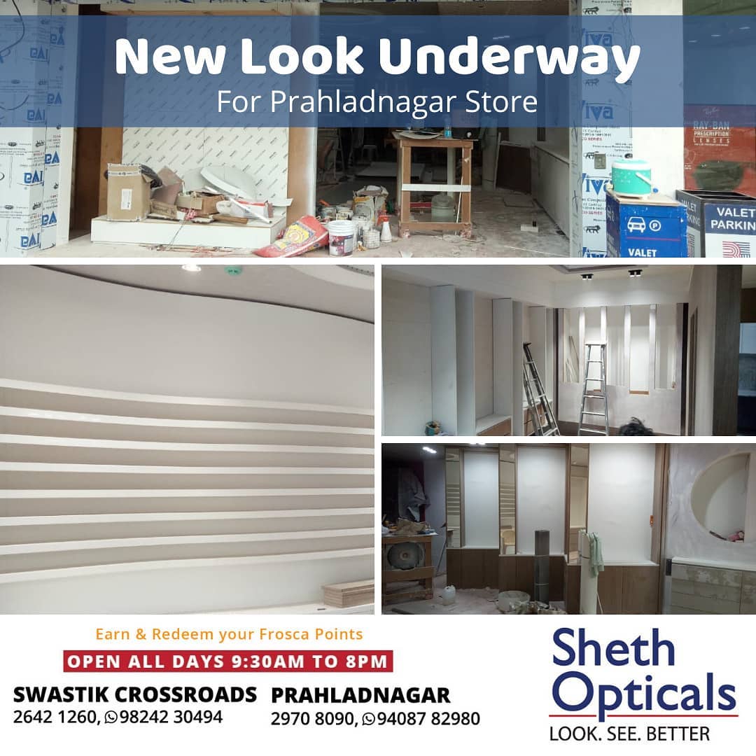 New Look Underway for Sheth Optical's #Prahladnagar store! We are undergoing this transition to welcome you in our newer look with wider product..