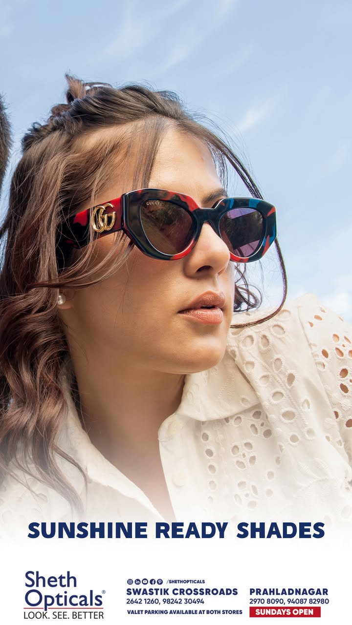 Making waves with the shades that outshine the sun s own spotlight Be the day s brightest star poolside Check out the widest range of eyewear at our stores C G Road 91 98242 30494 Prahladnagar 094087 82980 Sunday Open Valet Parking Available