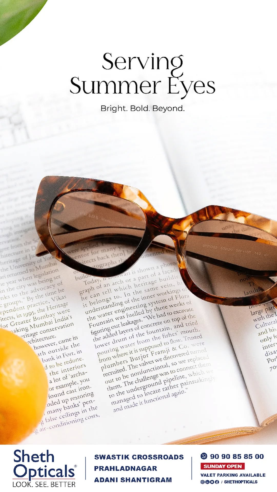 Serving Summer Eyes These frames don t just handle the glare they own it With a silhouette that balances high intensity vibrancy and sharp elegant lines they re designed for the moments when you want your presence to be felt before a word is even spoken Claim your pair from our premium range C G Road 91 98242 30494 Prahladnagar 91 94087 82980 Shantigram 91 90 99 33 63 00 Sunday Open Valet Parking Available premium eyewear store in ahmedabad designer sunglasses and eyeglasses branded eyewear near me luxury optical boutique stylish eyewear collection optical store for sunglasses designer eyewear shop ahmedabad