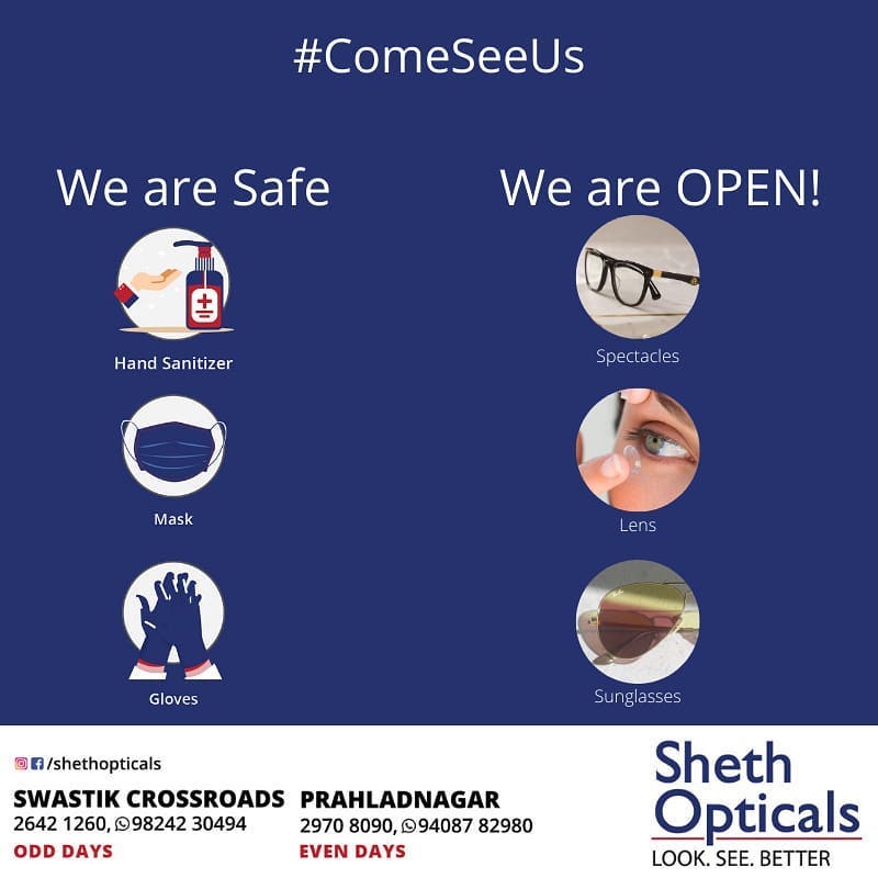 @shethoptical is SAFE & OPEN for Sales / Repair from 9am to 4pm. Our Swastik X Roads (C.G. Road, Navrangpura) showroom will be open on ODD days (i.e...